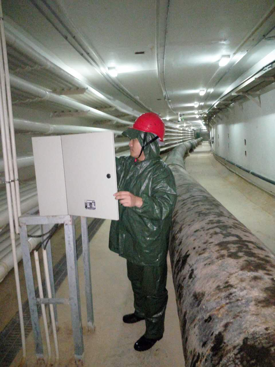 (我司維修電工在綜合管廊內(nèi)部巡查,地點(diǎn):綜合管廊)