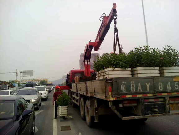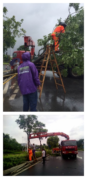 (對被臺風(fēng)刮倒的樹木進(jìn)行扶正,保障路面安全)