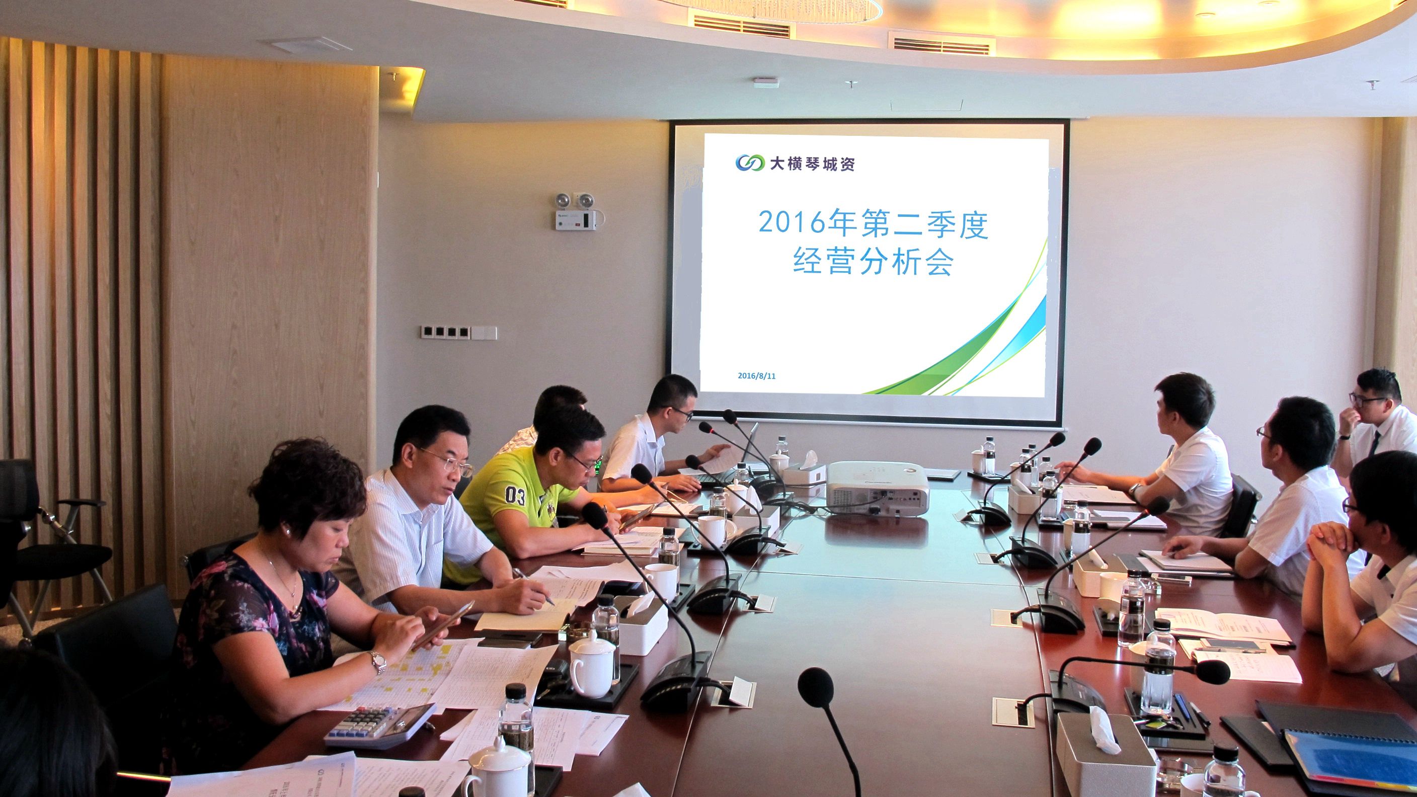 2016年8月11日下午,大橫琴城資公司召開2016年第二季度經營分析會,目的在于分析第二季度經營管理和服務情況,查找存在問題,認清面臨的形勢,克服困難,全面完成今年目標任務。會議由公司總經理鄭進博主持,集團公司副總經理兼我司執行董事田偉、公司領導班子成員、各部門、各物業項目和市政管養中心負責人參加了會議。