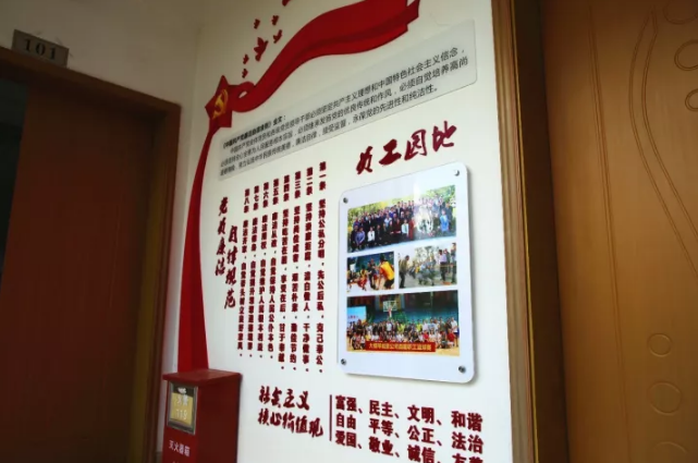 升級版文化墻由兩部分組成,即一樓公司形象宣傳文化墻、二樓黨建文化墻。其中,一樓文化墻涵蓋公司簡介、業(yè)務(wù)展示、員工園地等板塊;二樓文化墻包括喜迎十九大標(biāo)語、“兩學(xué)一做”、黨的光輝歷程、廉潔標(biāo)語。