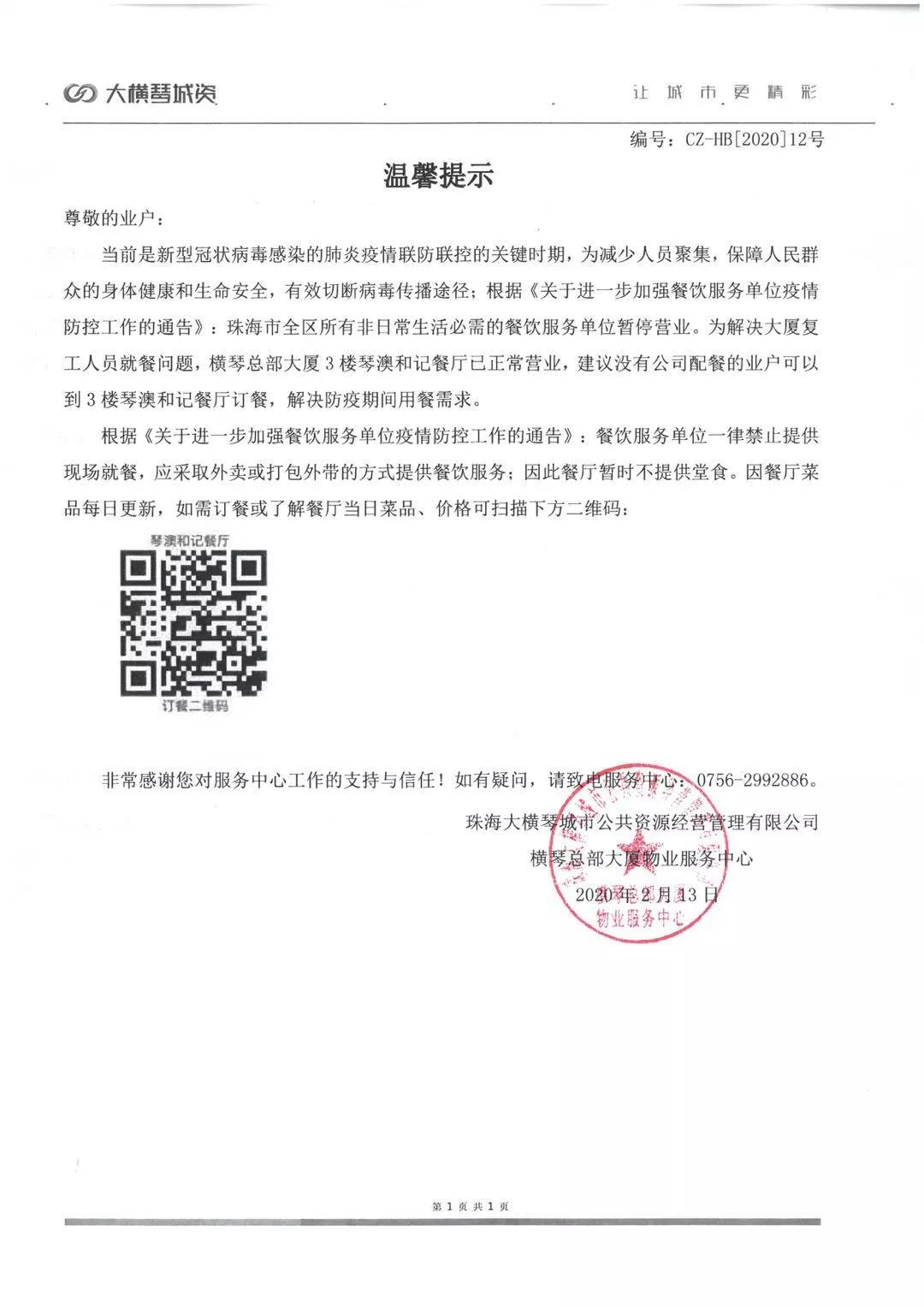 每日對(duì)大廈內(nèi)的人流量進(jìn)行統(tǒng)計(jì)、監(jiān)測(cè)。入駐橫琴總部大廈的企業(yè)共有43家約900人,截止到2月17日,已復(fù)工企業(yè)有15家,合計(jì)142人,其中有2家澳資企業(yè)復(fù)工,約15人,每日有60余名物業(yè)工作人員在崗。