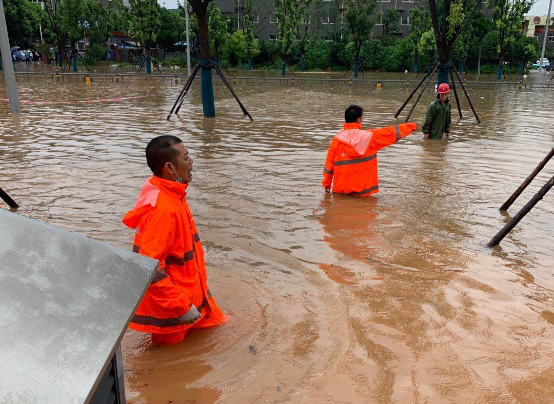 7月6日,武漢發(fā)布暴雨紅色預(yù)警,日降水量達到了472.3毫米。黃家湖大道的低洼位置,雨水無法及時排走,連續(xù)強降雨導(dǎo)致水位不斷增高,管廊外部道路有600米路段出現(xiàn)內(nèi)澇,積水接近1米,沒過搶險人員的腰部,直逼綜合管廊監(jiān)控中心及管廊3個通風(fēng)口。