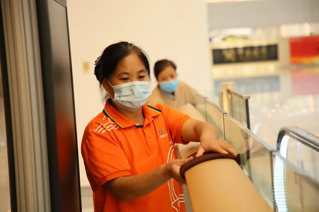 “保潔部請調派人員,再對扶梯的衛生進行一次保潔!”
