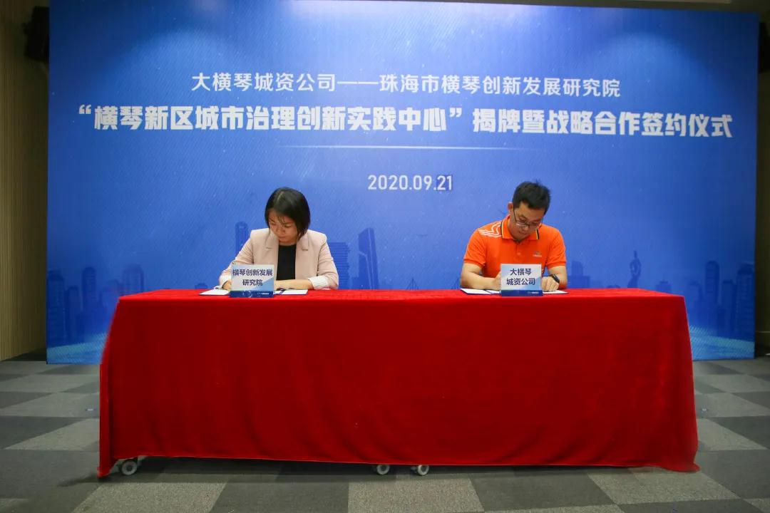 9月21日,“橫琴新區城市治理創新實踐中心”揭牌暨戰略合作簽約儀式在大橫琴城資公司成功舉行。此次揭牌暨戰略合作簽約,標志著大橫琴城資公司與橫琴創新發展研究院正式開啟全面深化合作的新篇章,雙方將整合各自優勢、強強聯合,共同開展橫琴新區城市治理創新實踐研究,致力探索城市治理新模式,為國家社會治理貢獻橫琴力量。
