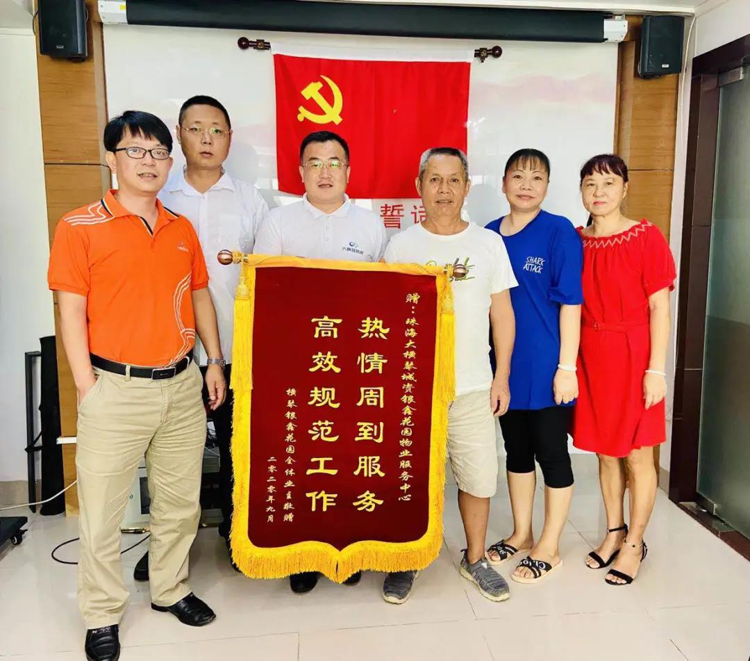 2020年9月,銀鑫花園全體業主贈送銀鑫花園物業服務團隊一面印有“熱情周到服務,高效規范工作”的錦旗,對物業工作表示肯定與支持。