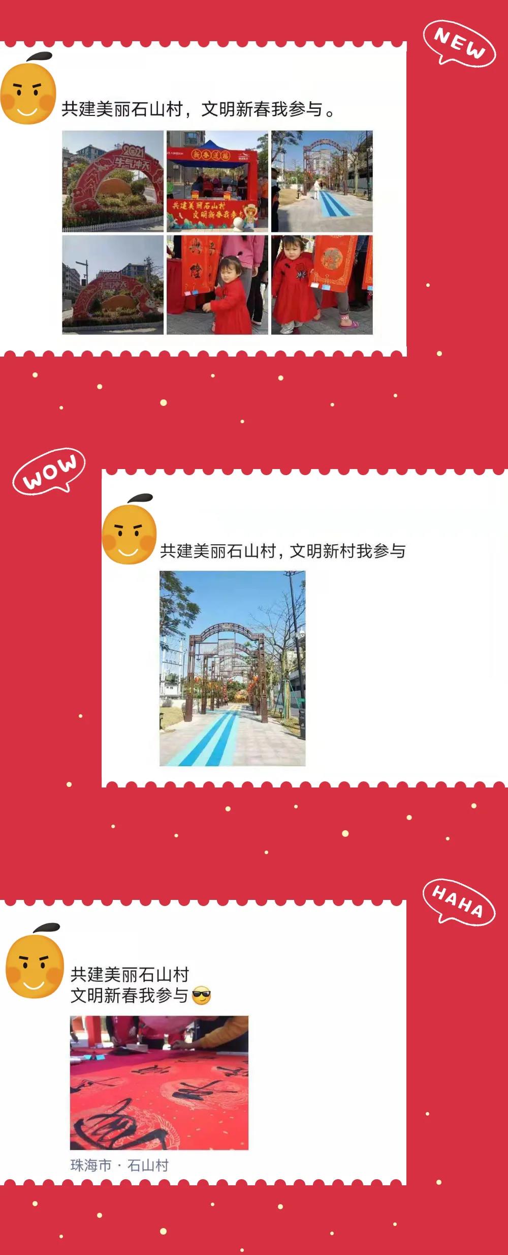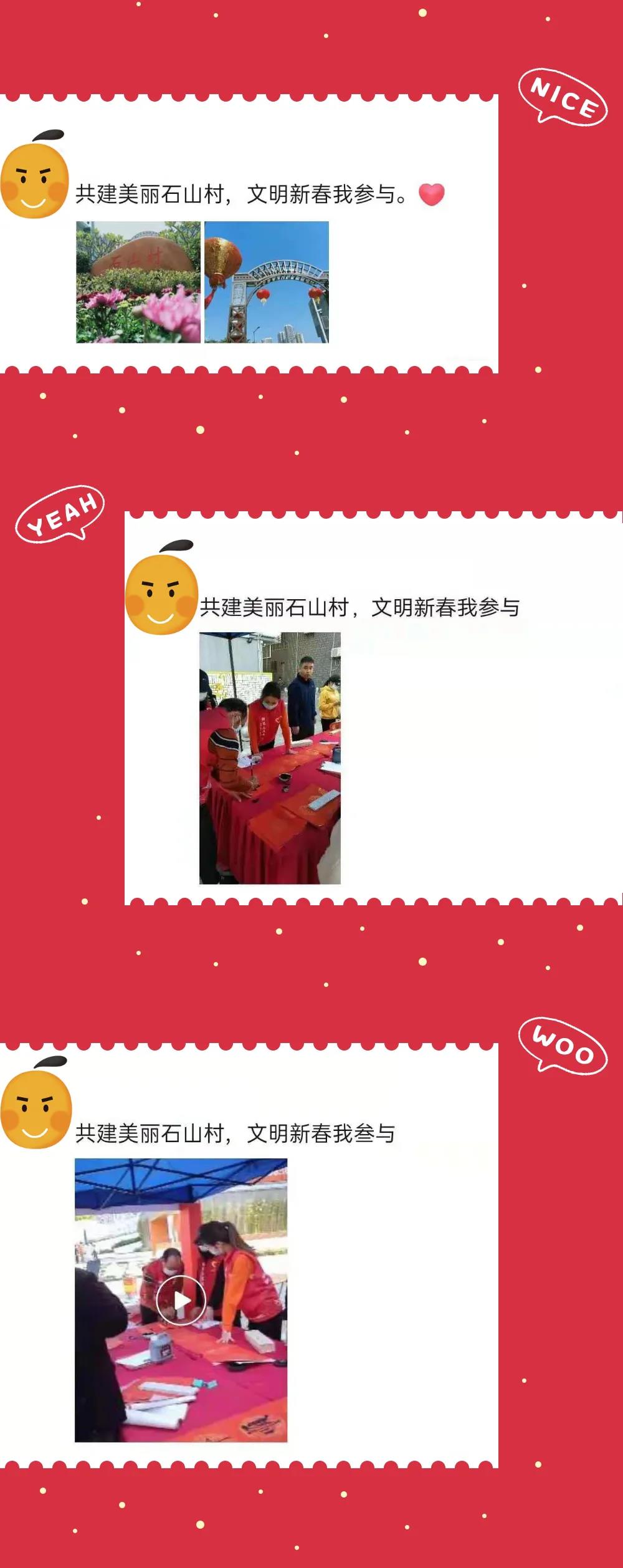 居民們相繼發(fā)布以“共建美麗石山村,文明新春我參與”為話題的朋友圈