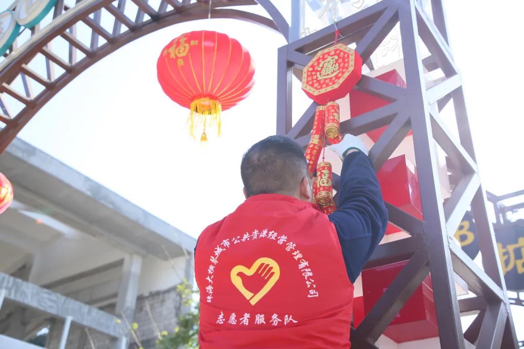 村居的工作人員和志愿者齊出動(dòng),裝扮著年味十足的村居