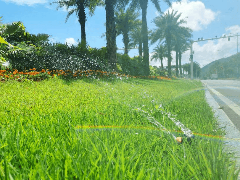 答:水“喝”足了,綠意自然也更濃了。大橫琴城資對綠化澆灌系統進行升級改造,采用灑水車+噴淋系統相結合的澆灌方式,全面提升綠化管養水平,讓綠化植被“喝飽水”、“長高高”。