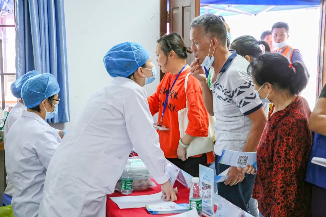醫生們為居民提供測量血壓、血糖、口腔檢查等多項服務,在仔細詢問了老人身體情況后為其提出了科學的健康意見,老人們激動不已,連聲致謝。