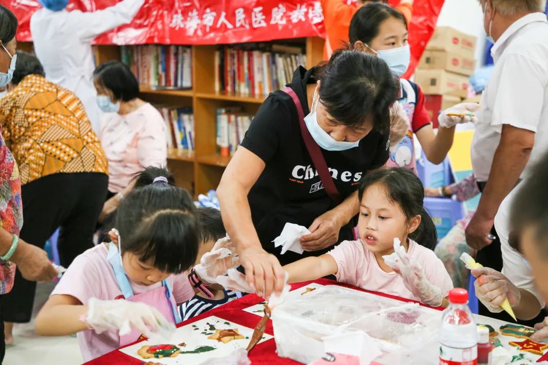 在下村書屋,志愿者們提前布置好手工甜品制作區域,并邀請村居長者、居民共20余人在書屋內開展了一場軍旅元素手工甜品制作體驗,在老師的帶領下,長者與小朋友們共同完成餅底涂色、寫字等互動環節,行動中不僅表達了對長者的濃濃敬意,更通過細致溝通促進了鄰里間的情感交流,增強了居民的歸屬感。