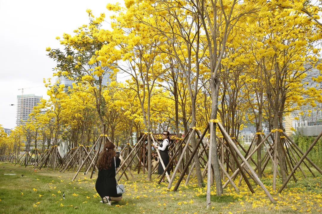 一樹黃花醉人眼,微風輕撫舞落英。在橫琴粵澳深度合作區的各個區域,耀眼迷人的黃花風鈴木再次美出圈!