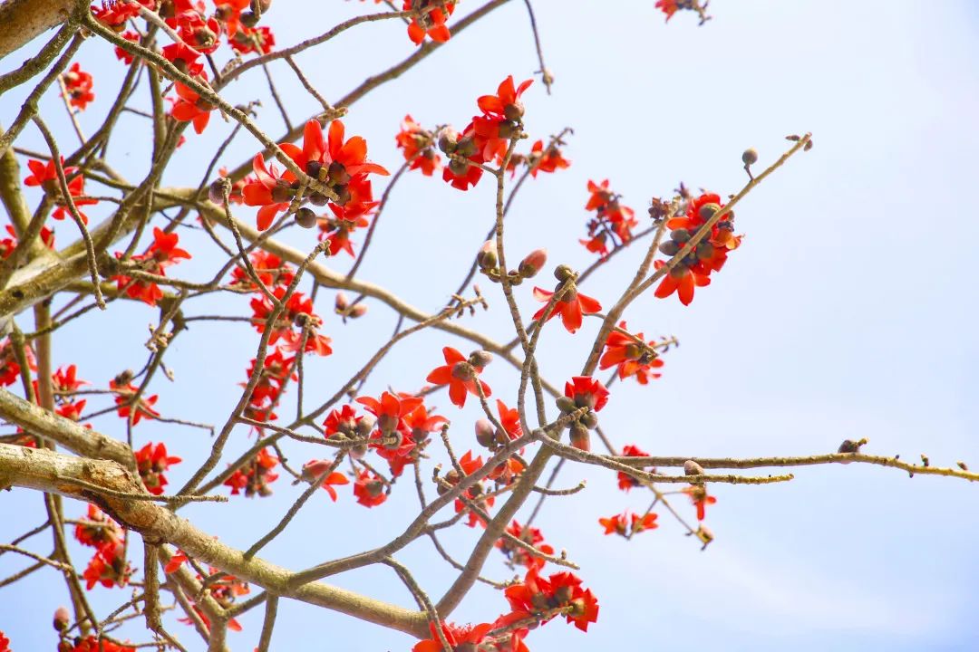藍天白云作為背景,一朵朵金燦燦的黃花在徐徐春風中輕舞搖曳,似一串串惹人矚目的“黃色風鈴”,在陽光的照耀下格外迷人。