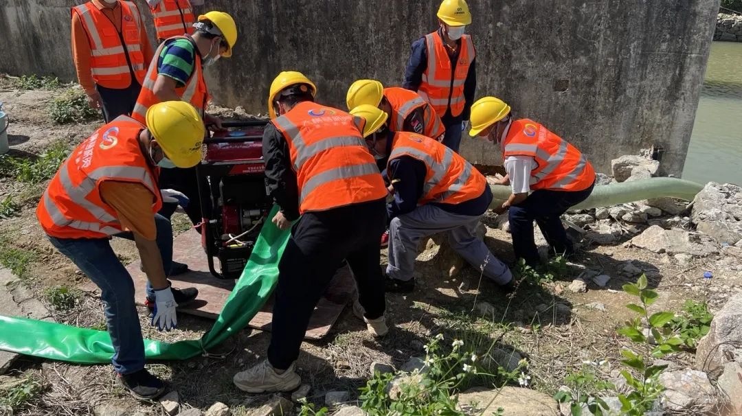▲模擬持續暴雨,造成市政高壓停電,泵站停止排水,水位上漲,工作人員使用應急設備排水,同時上報高壓停電情況。
