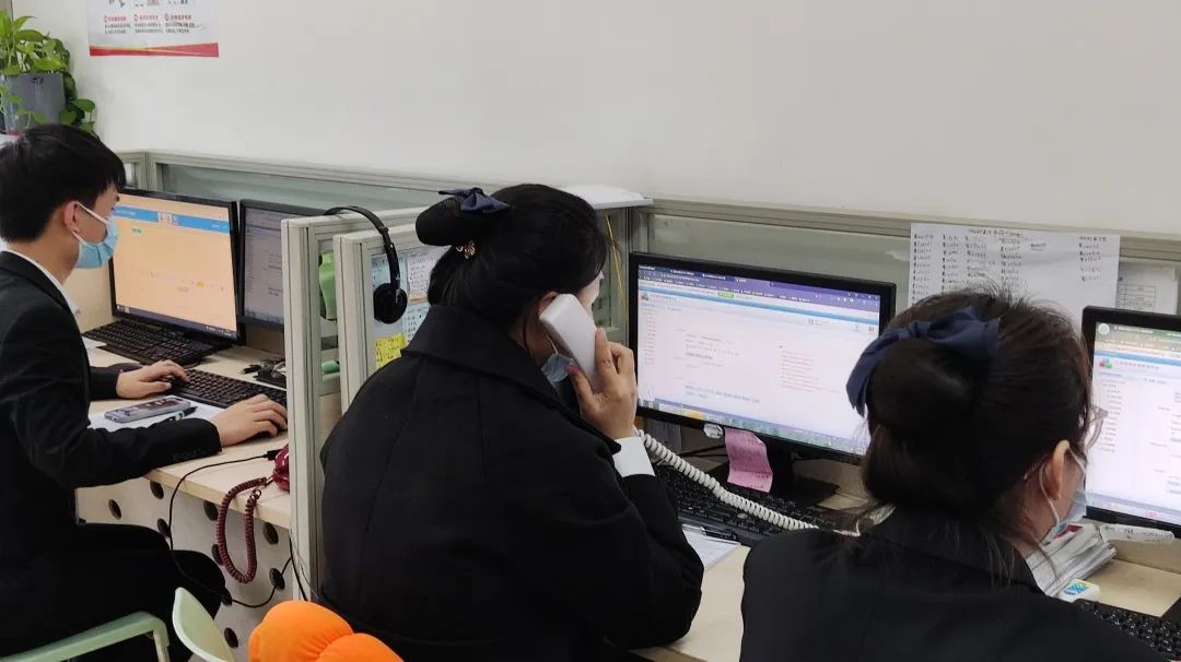 ▲模擬臺風來襲,客服員發短信、打電話通知在低洼處停車的車主及時移車至安全區域