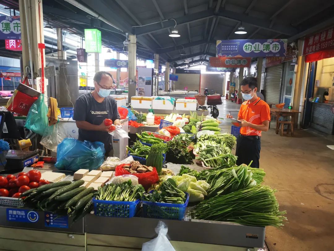 在橫琴物業集市,各攤位上的蔬菜、肉類、水果按照不同類別整齊擺放,品種豐富,數量充足。大橫琴城資物業集市管理團隊正忙著在集市內部巡查,規范經營管理行為,為居民提供安心、舒適的購物環境。“目前總體物價平穩,我們每天都會檢查供應情況,對商品的進貨渠道進行溯源,確保食品安全。”大橫琴城資駐物業集市的項目主管鄧春波說。