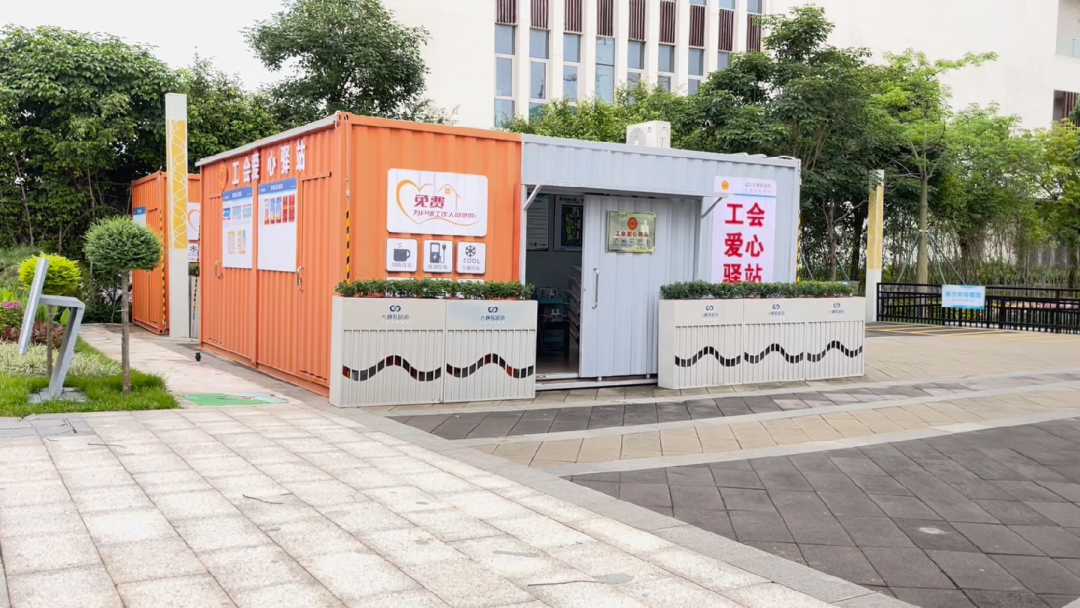 ▲大橫琴城資公司在體育公園、三塘村建設廣東省級工會愛心驛站,為一線戶外勞動者提供后勤保障
