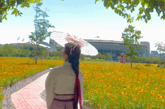 穿上漢服在花海中穿梭