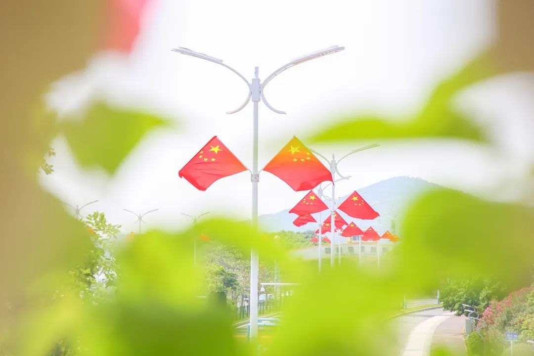 整齊劃一的五星紅旗迎風(fēng)飄揚(yáng)