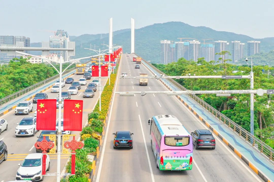 從橫琴大橋駛?cè)牒献鲄^(qū),迎面而來的一面面紅旗與一個個中國結(jié),為合作區(qū)裝點(diǎn)出喜慶的節(jié)慶氛圍。