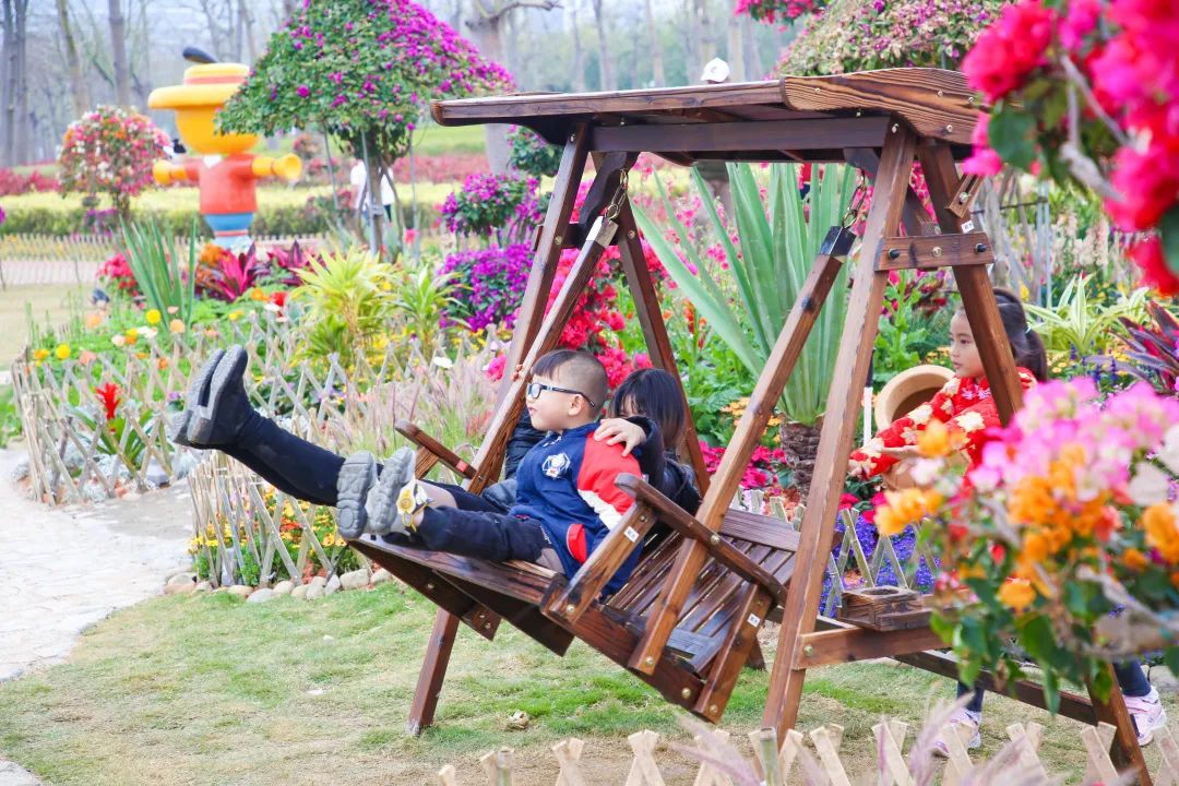 在空閑時候帶上孩子來橫琴花海長廊賞景