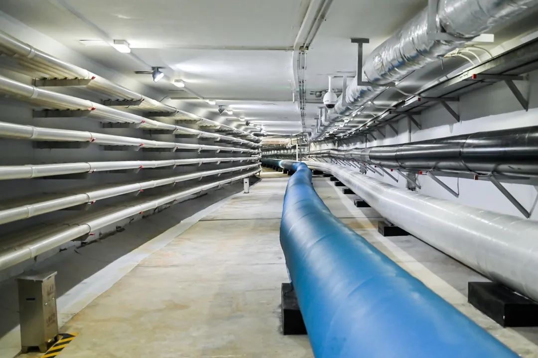 在講解員的帶領下,學生們可詳細了解管廊的建設情況,近距離觀測管廊內(nèi)材質(zhì)不同、粗細不一、顏色各異的多種管道,探秘地下“長城”。