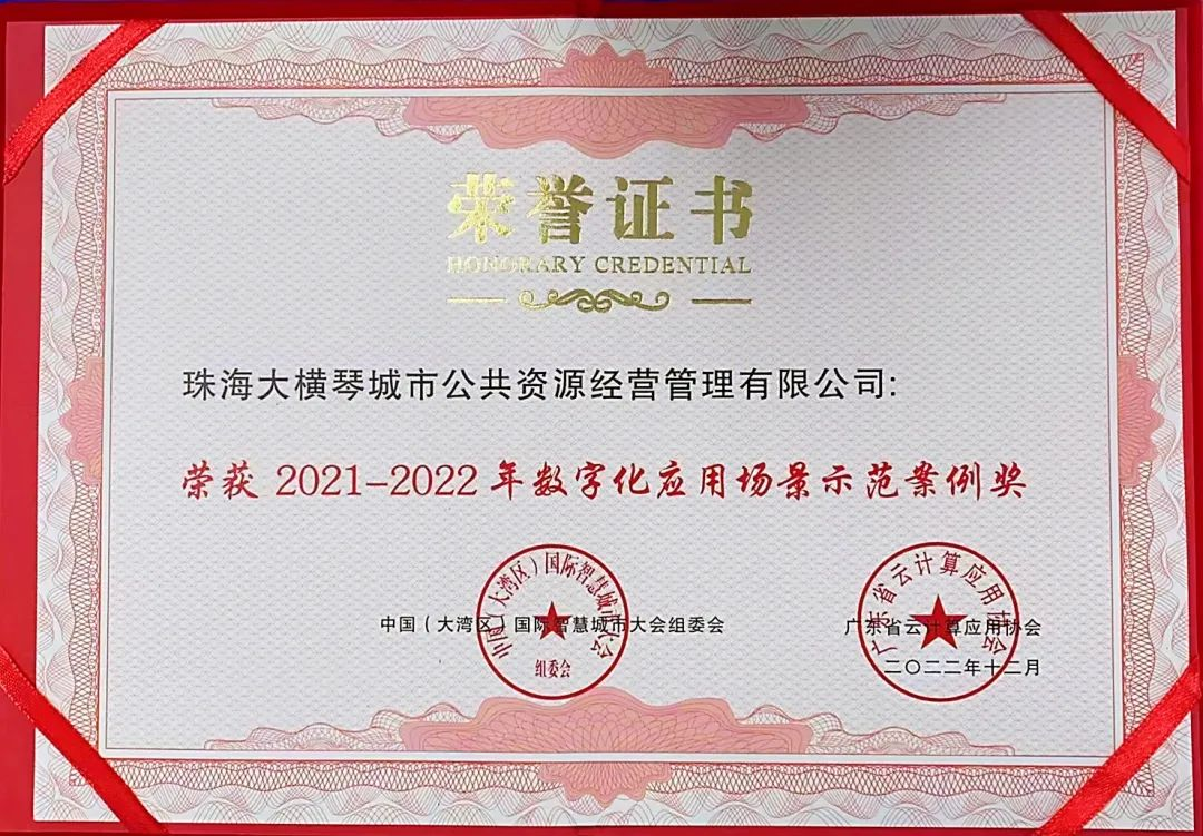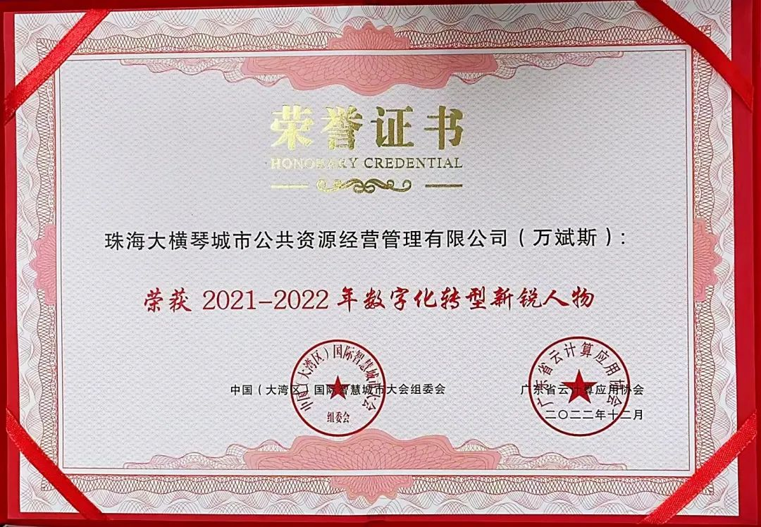 大橫琴城資“城市智慧運營中心平臺”榮獲“2021-2022年數字化應用場景示范案例獎”,公司副總經理萬斌斯榮獲“2021-2022年數字化轉型新銳人物”。獲此榮譽,是對公司在智慧城市運營領域的創新技術方案及落地服務成果的認可。