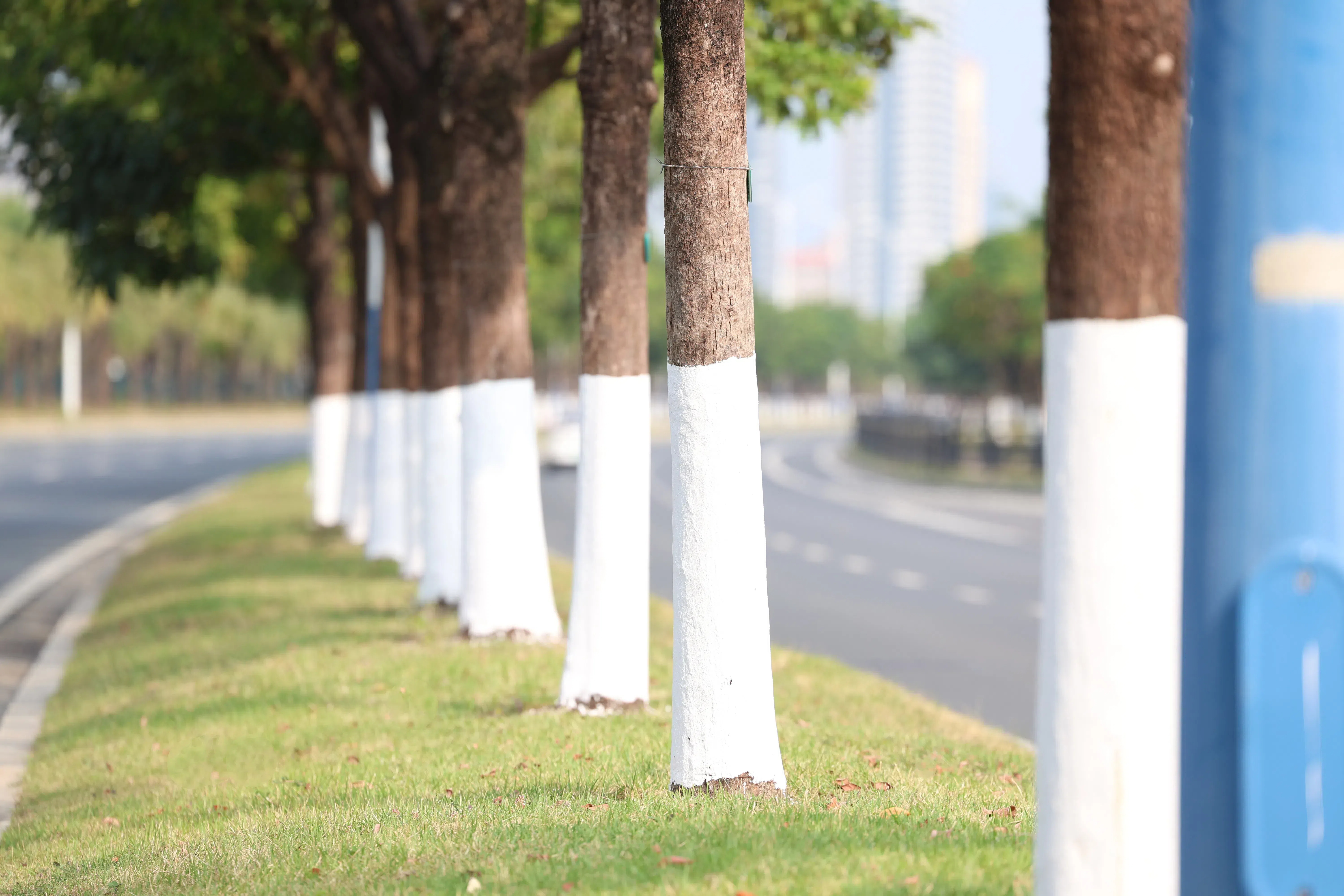 樹木涂白是秋冬季樹木養護管理的一項重要措施。涂白后不僅能夠起到殺菌殺蟲的作用,還能有效預防樹木日灼、凍害的發生。在提升綠化效果的同時,讓道路兩側呈現出更加整齊劃一、整潔美觀的視覺感受,并且為居民夜間開車出行起到安全警示作用,有力保障了行人和通行車輛的安全。