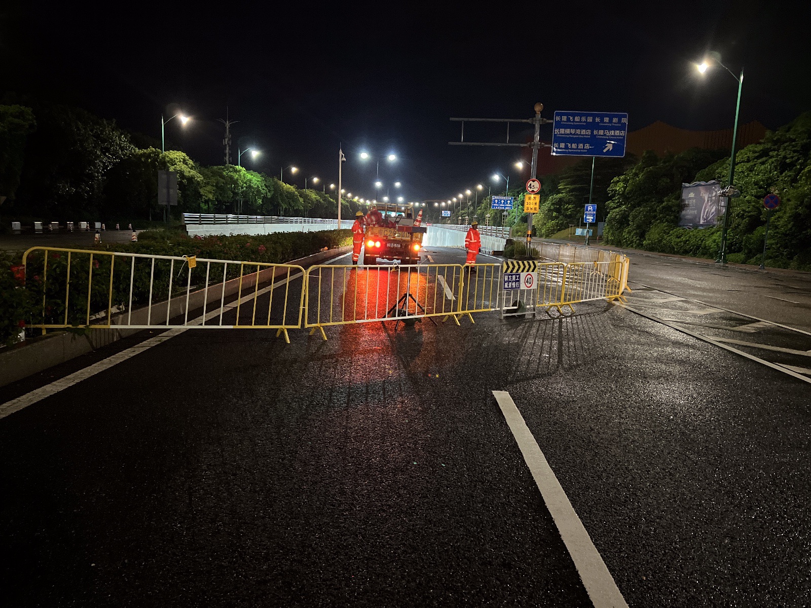 關閉十字門片區、天沐河及花海長廊全線、各公園以及沿海邊區域的149個景觀燈及全島260余座公交站燈箱電源,并對箱體進行加固。