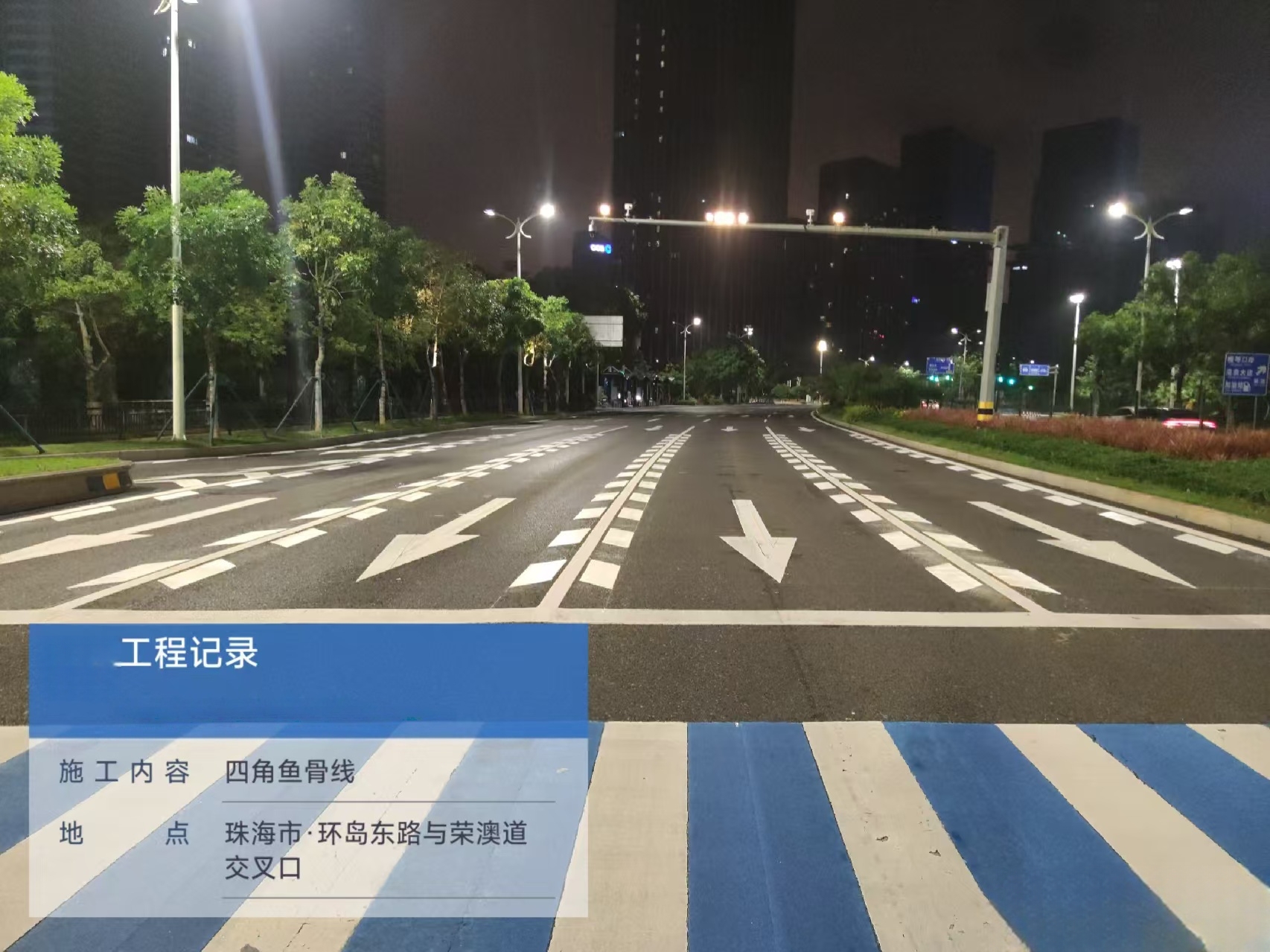 在設有交通信號燈的路口,增設“魚骨線”(縱向減速標線),通過視覺引導,提醒車輛駕駛員減速慢行。